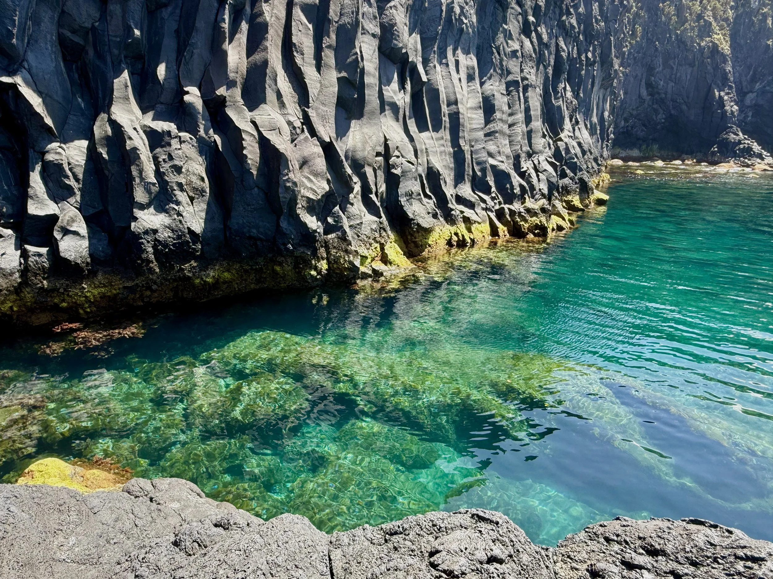 Our first full day took us to Fajã do Ouvidor, one of the island’s most scenic coastal plateaus. We dipped into the jewel-toned Simão Dias natural pool, its black lava walls worn smooth by the sea. Afterwards, we tried our first taste of lapas—local limpets grilled with garlic and butter, salty and chewy and what would become a recurring craving.