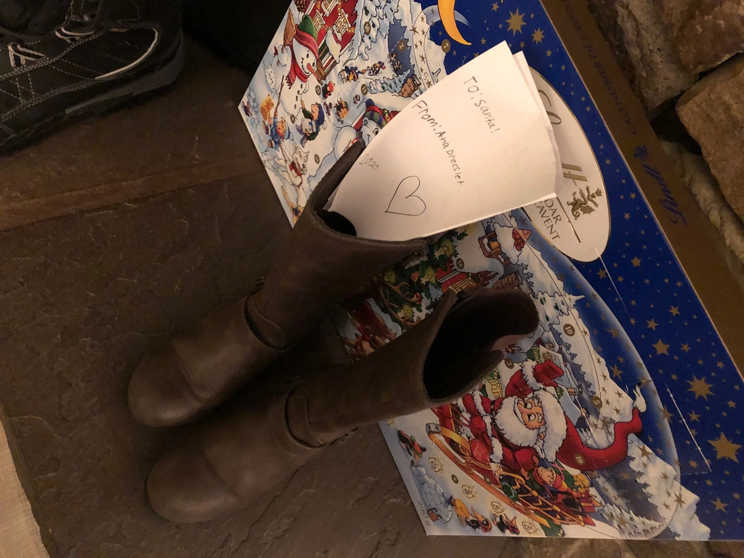 Ana’s boots with a hopeful letter for Santa