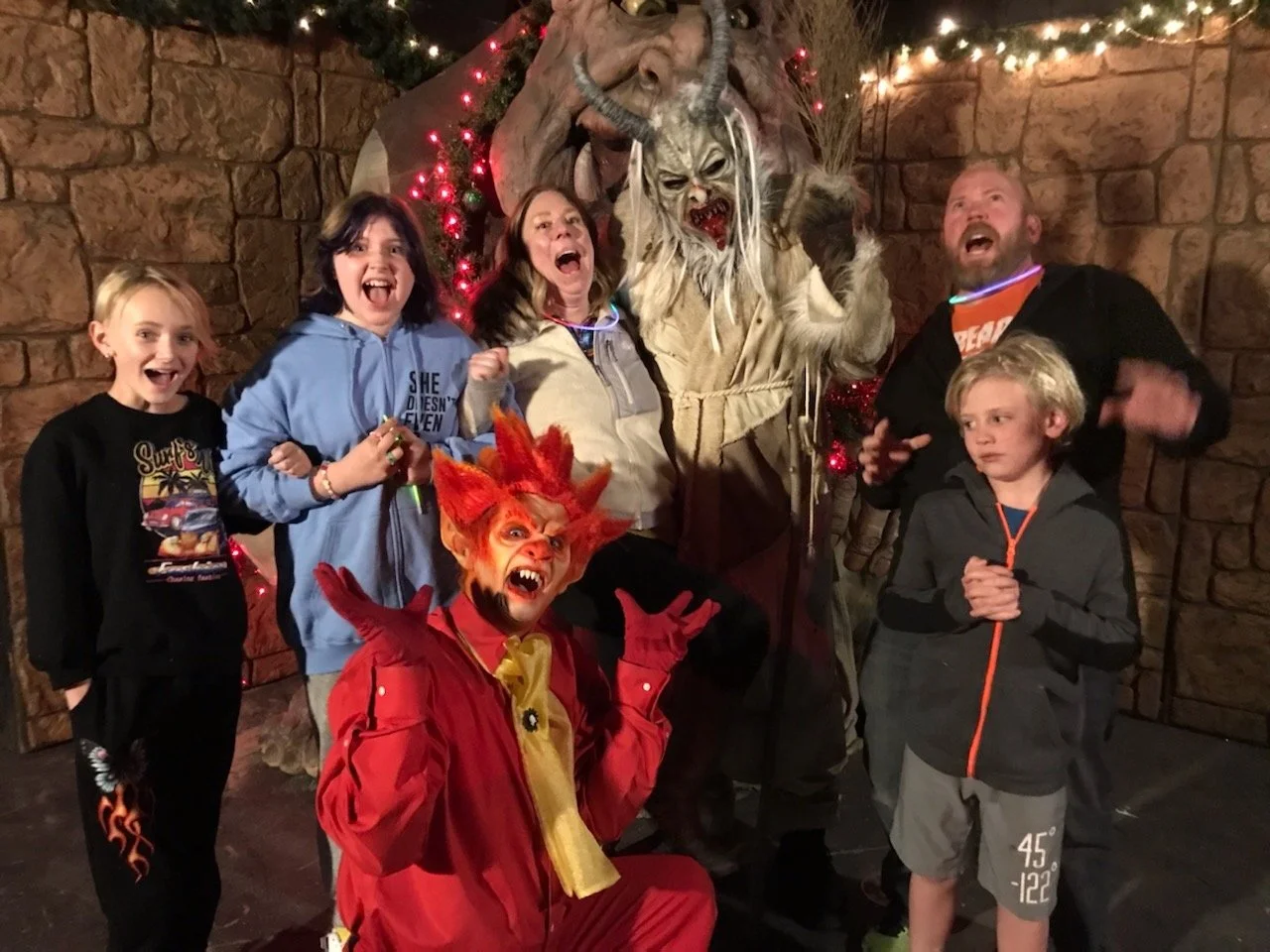Ana and family with fearful Krampus