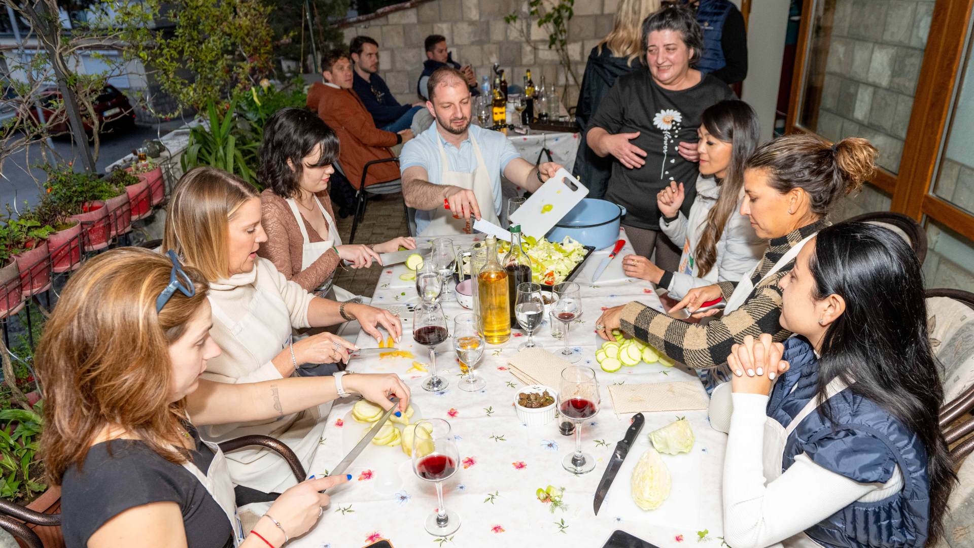 We step into Kotor’s Old Town, where a local guide leads us through narrow lanes, Romanesque churches, and stories layered in stone beneath Venetian walls. Late morning brings us into a traditional Montenegrin home in the quiet Zlatne Njive neighborhood. In a hands-on cooking class, we prepare regional dishes—vegetarian, seafood, or meat—chosen in advance, learning techniques and family traditions as we go. The table becomes our classroom, and we share the meal we’ve created together. In the evening, we gather at Restaurant Galion overlooking the bay for a farewell dinner—seafood, wine, and one last Adriatic sunset.