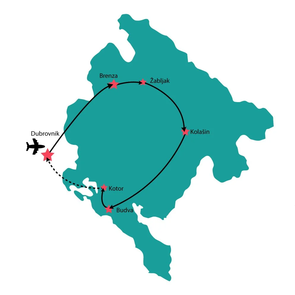 Our time together draws to a close this morning. We assist with transfers back to Dubrovnik for international departures, or onward connections for those continuing their travels along the Adriatic and beyond. The roads we’ve traced—river canyons, mountain passes, stone towns, and shared tables—now settle into memory. Montenegro has a way of staying with you: in the taste of mountain cheese, the scent of pine and salt air, the echo of water against limestone. As always, the detour ends, but the stories travel on.