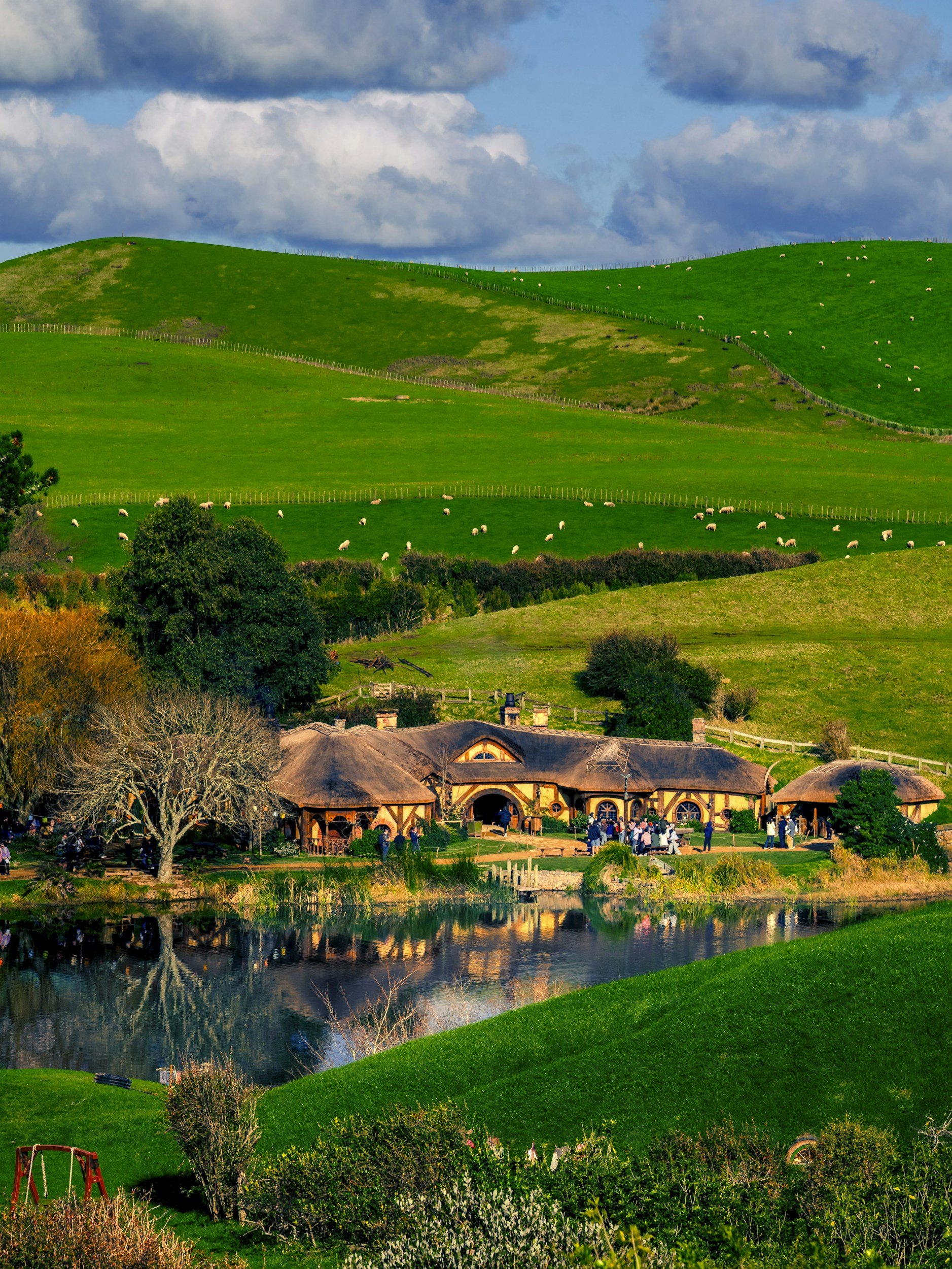 We depart Auckland and travel south through the luminous green hills of the Waikato, a landscape that feels almost mythic even before we arrive. Near Matamata, we step into Hobbiton, the meticulously preserved film set of The Lord of the Rings and The Hobbit. What began as cinema has become a modern pilgrimage site—an exploration of how story, landscape, and imagination intertwine. As we wander past round doors and garden paths, we consider why New Zealand’s terrain so convincingly became Middle-earth. After lunch on site, we continue to Rotorua, where geothermal forces and Māori heritage shape the next chapter of our journey.